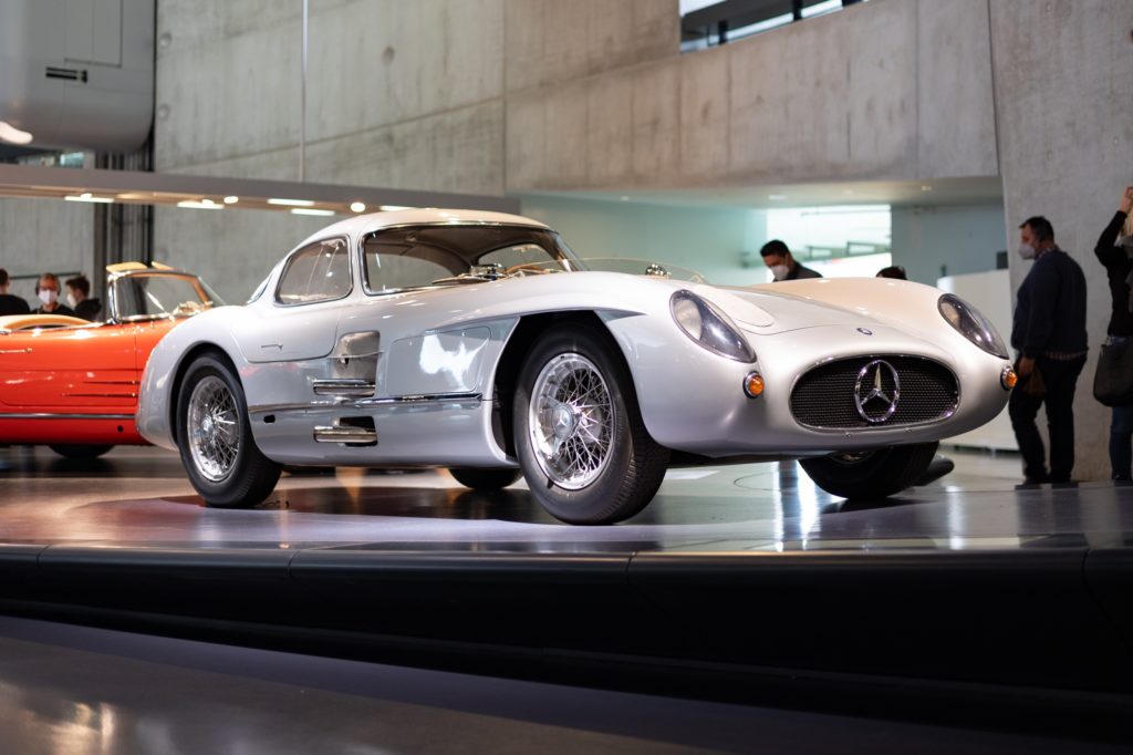 年代ごとに分けられたメイン展示室で見逃せない1台といえば、1945年から1960年の自動車が展示される階にある300SLR ウーレンハウトクーペであろう。この300SLRウーレンハウトクーペは世界に2台しかない内の貴重な1台で、もう1台はオークションにおいて世界最高額で落札されていることから、この世の中で最も価値のある車となっている。テーマ別展示での見逃せない一台といえば、「著名人の愛車/公用車」として展示される、昭和天皇の公用車であった 1935年式 770 グローサー メルセデス プルマンリムジンであろう。外部からの攻撃にも対応できるよう強化された装備が特徴だが、ドア部分に皇室の菊の御紋を持つ一台は、日本人であれば是非とも見ておきたい。