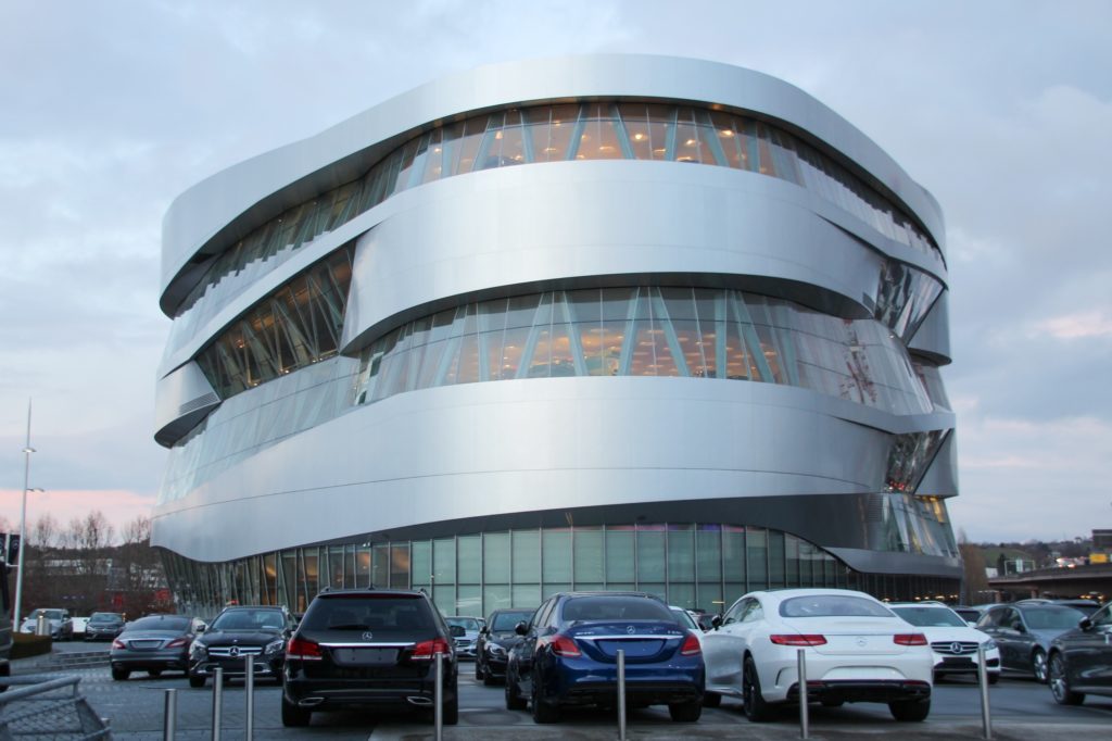 メルセデス・ベンツ社はドイツ南部の街 シュトゥットガルト(Stuttgart)とその周辺の町にいくつもオフィスや工場があるが、メルセデス・ベンツ博物館は本社所在地のウンターテュルクハイムにある。2006年5月19日にオープンした現在の博物館は、シルバーで曲線基調の非常に大きな建物で、その洗練されていながらも堂々とした佇まいは圧倒されるほど。同じ街にあるポルシェ博物館同様にシュトゥットガルトを象徴するような存在と言える。