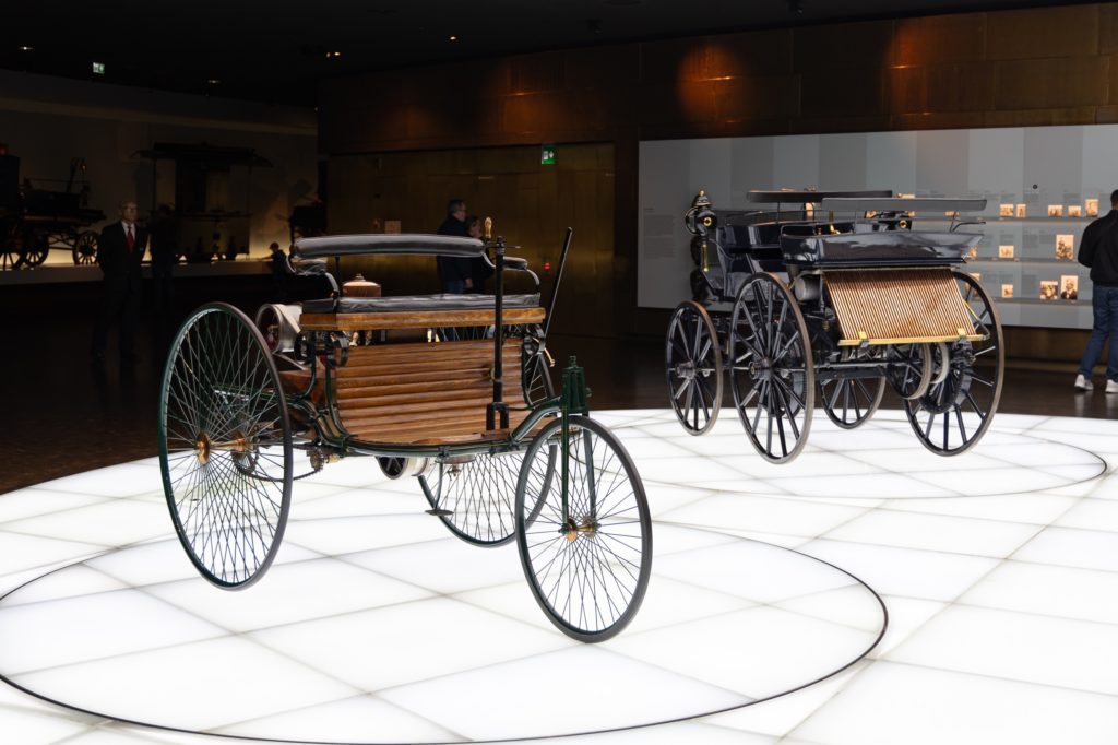 美しいシルバーの建物の中に、自動車を発明したゴットリーブ・ダイムラーを始まりとしているメルセデス・ベンツらしく、自動車史の始まりから現代までを網羅したさまざまな自動車が収蔵されている。